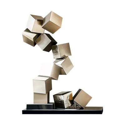 Die Goldwürfel Abstrakte Skulptur ist ein modernes geometrisches Kunstwerk, das eine einzigartige Mischung aus Form und Textur zeigt.Diese Skulptur ist ein Statement von zeitgenössischem Design und Kreativität.