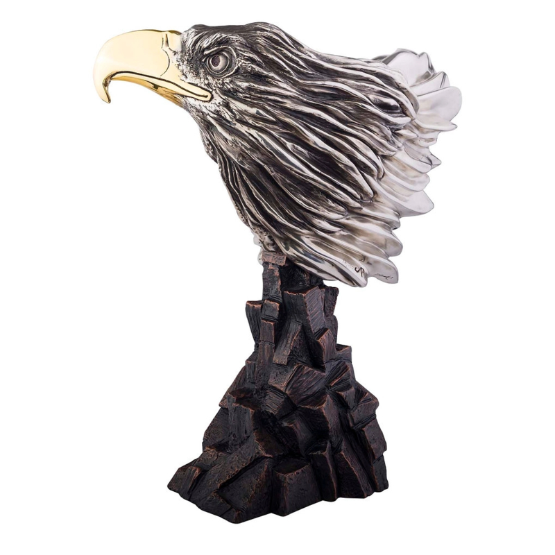 Diese Tieradlerskulptur ist aus Bronze und Edelstahl gefertigt. Die Gesamtform ist voller Designgefühl und die Details sind gut gemacht. Es ist eine gute Wahl, egal ob sie für die Innen- oder Außendekoration verwendet wird.