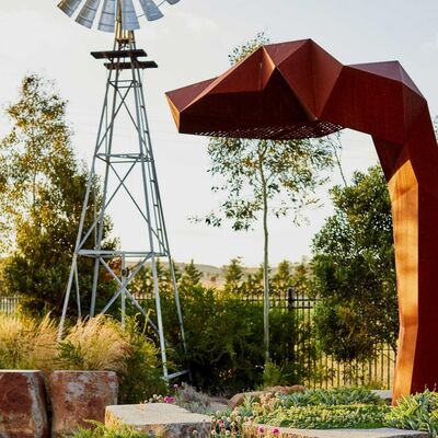 Materieller Nutzen:"Evolving rust-patina finish" erklärt die einzigartige visuelle Anziehungskraft des verwitterten Stahls (selbstschützender, farbverändernder Rost).